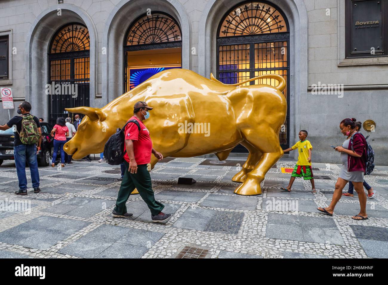 Sao Paulo Brazil 16 11 2021 B3 Brazilian Stock Exchange Inaugurates The Golden Bull Sculpture In The Historic Center Of Sao Paulo Inspired By The Bull Of Wall Street The Sculpture Stands In Front