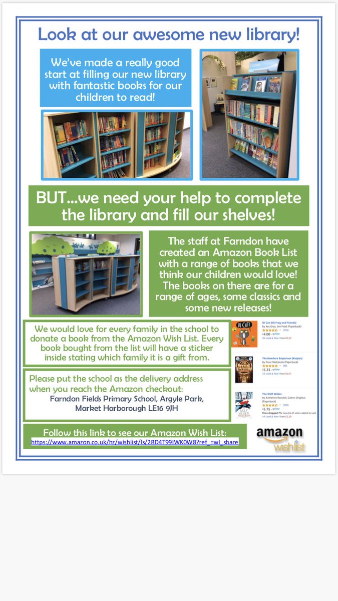 Farndonfieldsschool On Twitter We Have A Beautiful New Library To Inspire Young Readers We Would Love To Fill It With A Range Of Books To Nurture A Love For Reading Can